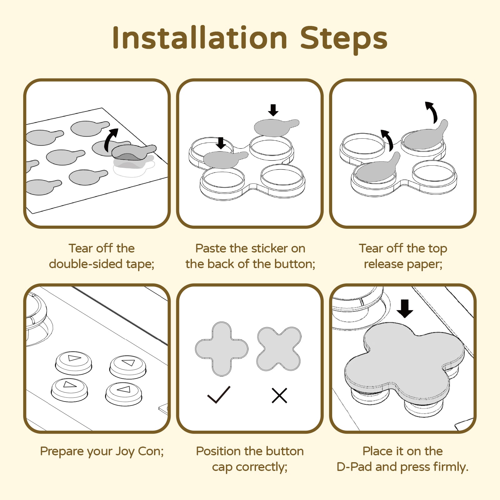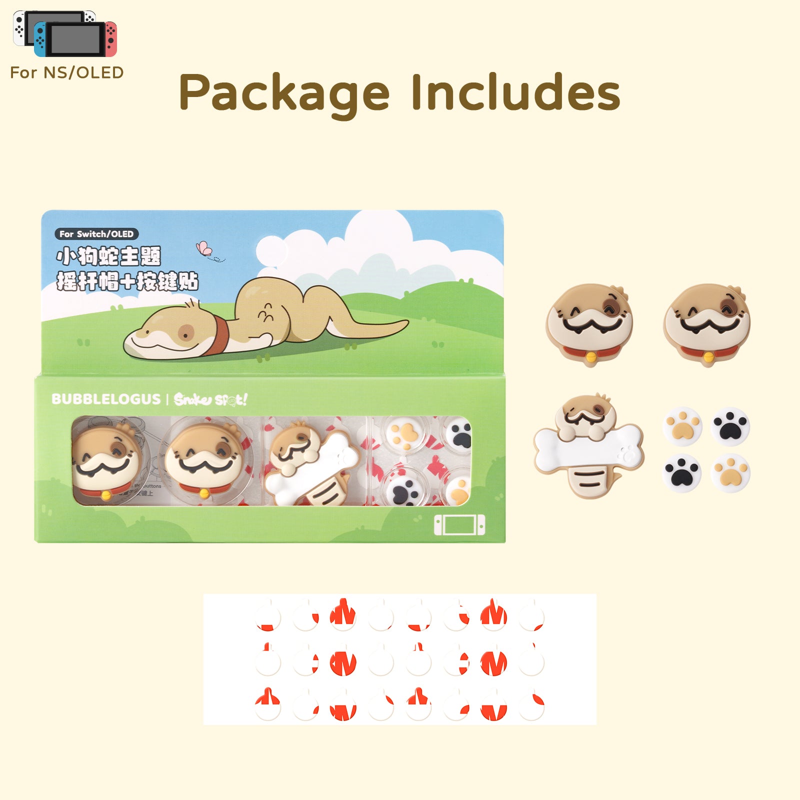 ❗Package Includes:1 Set ABXY key button caps + 1 * D-pad button cap + 2 * joystick caps + 1 sheet of stickers. Please note that the D-pad button cap compatibles with skin stickers, but not most protective shell/cases.