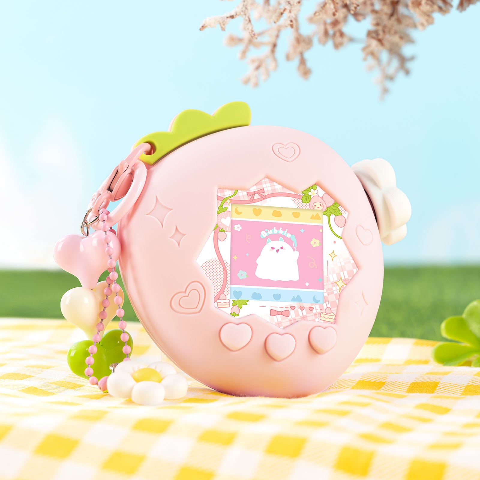 Custom-designed exclusively for Tamagotchi Paradise, this case features an adorable strawberry motif that brings a festive paradise vibe. Choose between classic red and sweet pink to match your unique style and make your Tamagotchi stand out.