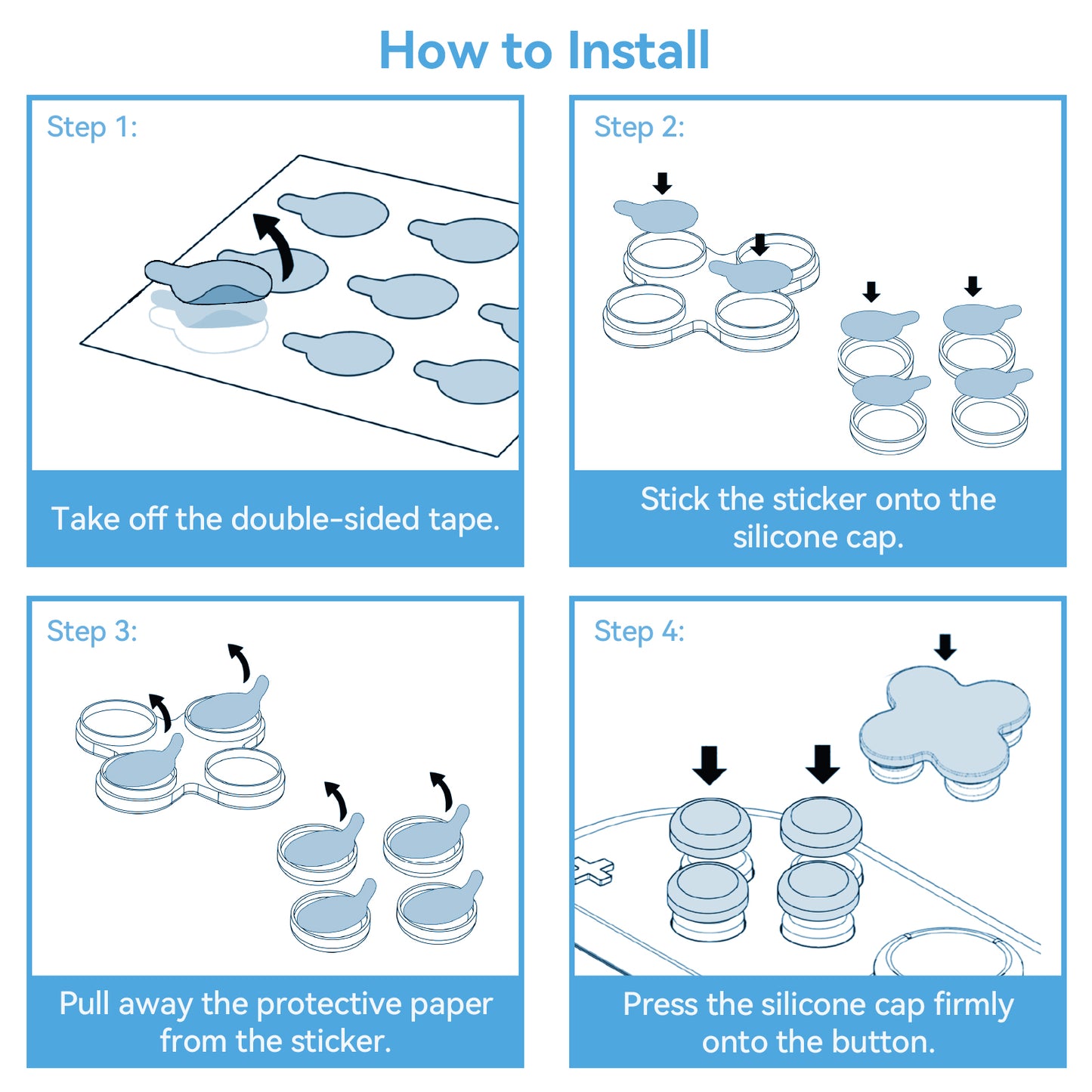 📦Package Includes: 1 Set ABXY key button caps + 1 * D-pad button cap + 2 * joystick caps + 1 sheet of stickers. Please note that the D-pad button cap compatibles with skin stickers, but not most protective shell/cases.